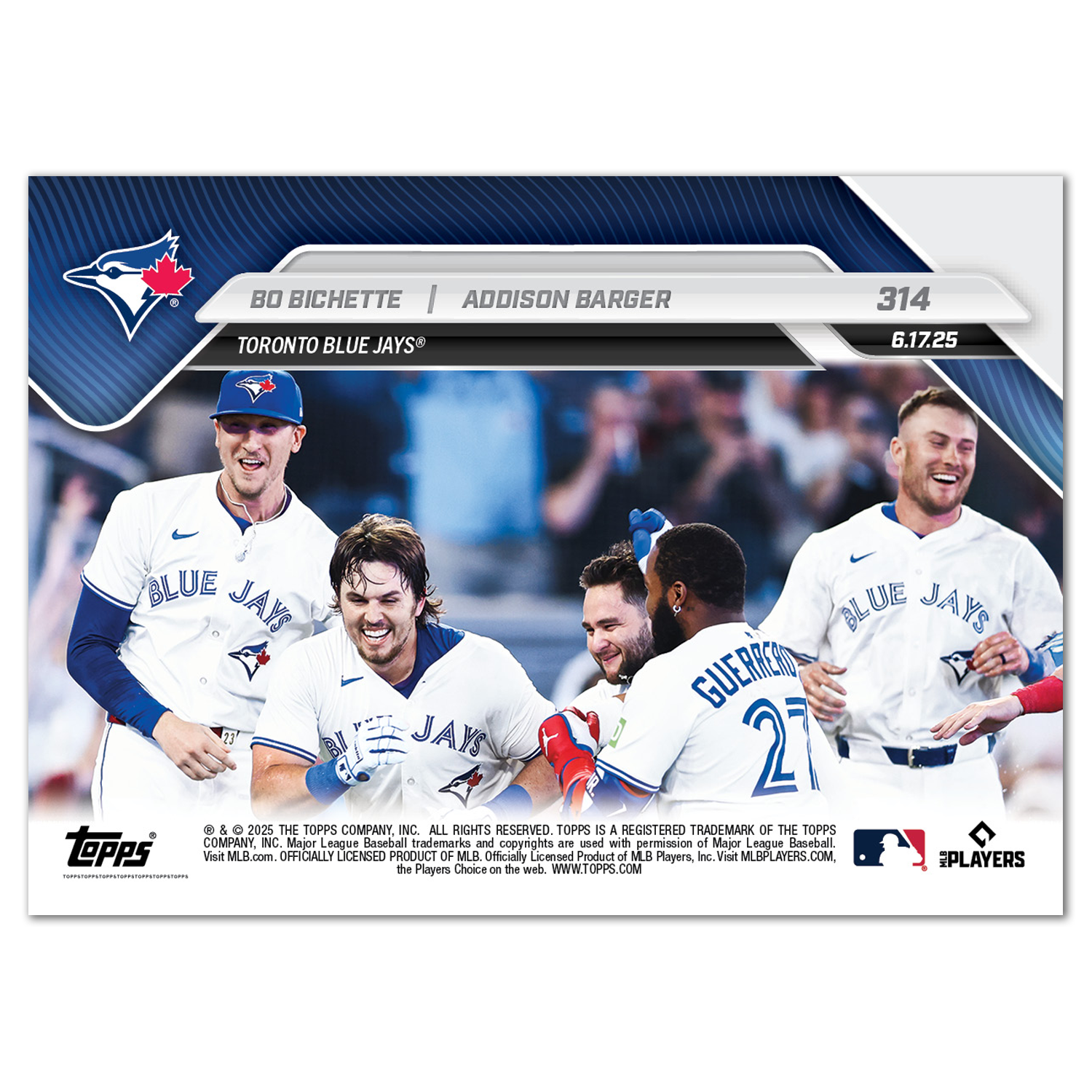 Bo Bichette / Addison Barger - 2025 MLB Topps NOW® - Card 314