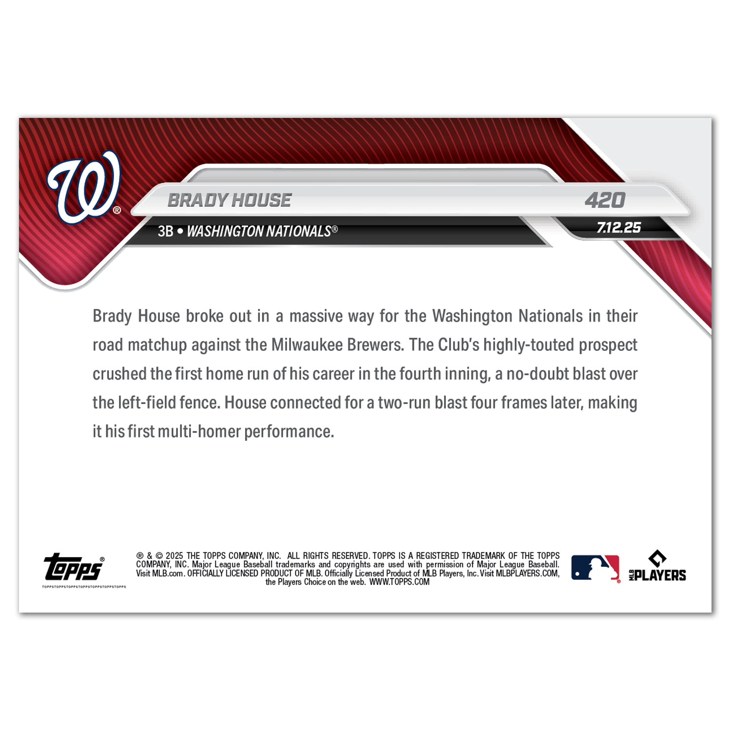 Brady House - 2025 MLB Topps NOW® - Card 420