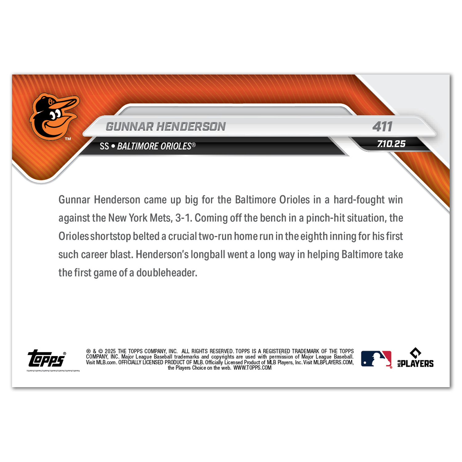 Gunnar Henderson - 2025 MLB Topps NOW® - Card 411