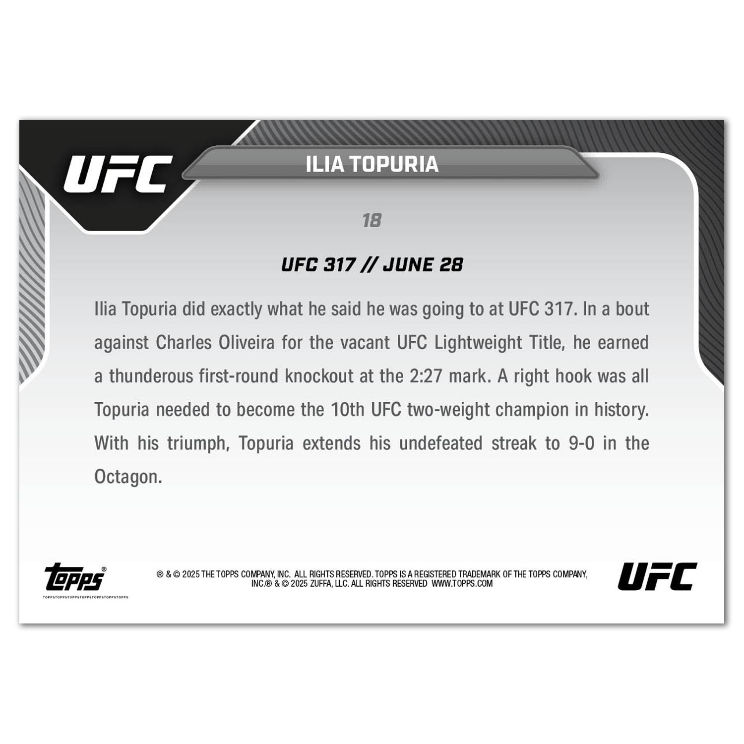Ilia Topuria - 2025 UFC Topps NOW® - Card 18 - LOOK FOR AUTOS
