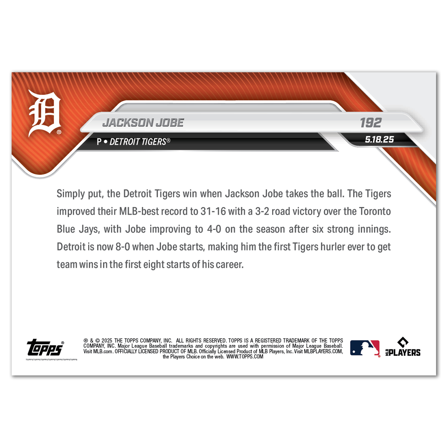 Jackson Jobe - 2025 MLB Topps NOW® - Card 192