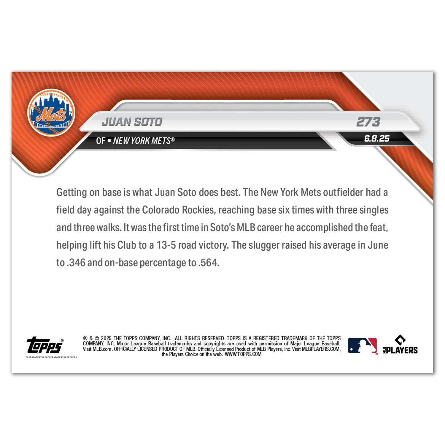 Juan Soto - 2025 MLB Topps NOW® - Card 273