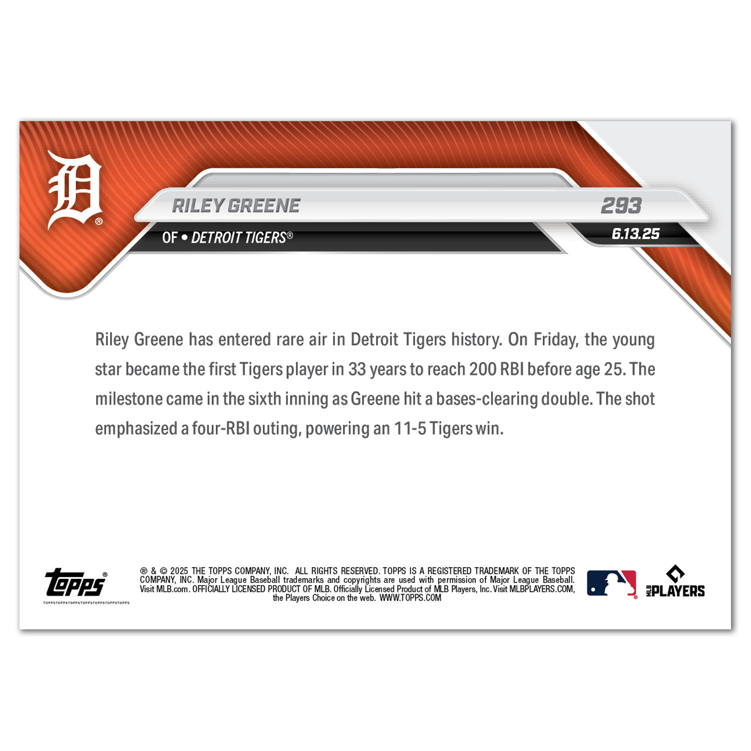 Riley Greene - 2025 MLB Topps NOW® - Card 293